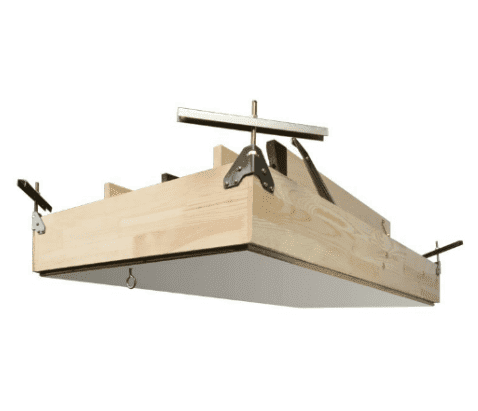 Монтажный комплект позволяет существенно упростить и ускорить процесс установки многосекционной деревянной чердачной лестницы складного типа. Детали размещаются по углам короба, делая его более прочным, препятствуя перекосам, расшатыванию. Это дает возможность максимально оперативно зафиксировать, правильно отцентровать всю конструкцию в готовом проеме.