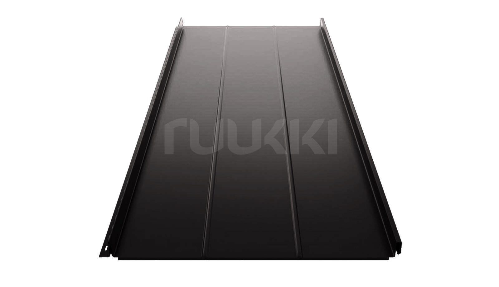 Металлическое покрытие Ruukki Classic B представляет собой современную, более стильную версию традиционной фальцевой кровли. Она обладает оригинальным дизайном, проста и удобна в монтаже. Продукция выпускается в шести расцветках, поэтому будет гармонично смотреться практически с любым фасадом. Полиэстеровое покрытие обеспечивает 30 лет гарантии качества от производителя.