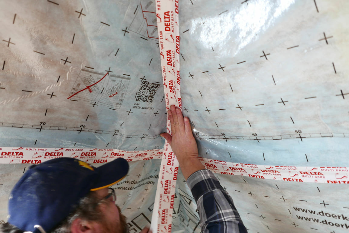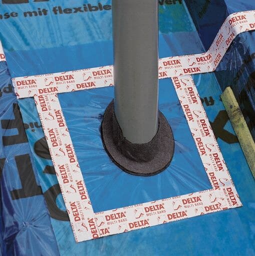 Лента DELTA®-MULTI-BAND M100 (ширина 100 мм.) хорошо подходит для создания воздухо- и паронепроницаемого примыкания к оконным и дверным проёмам.