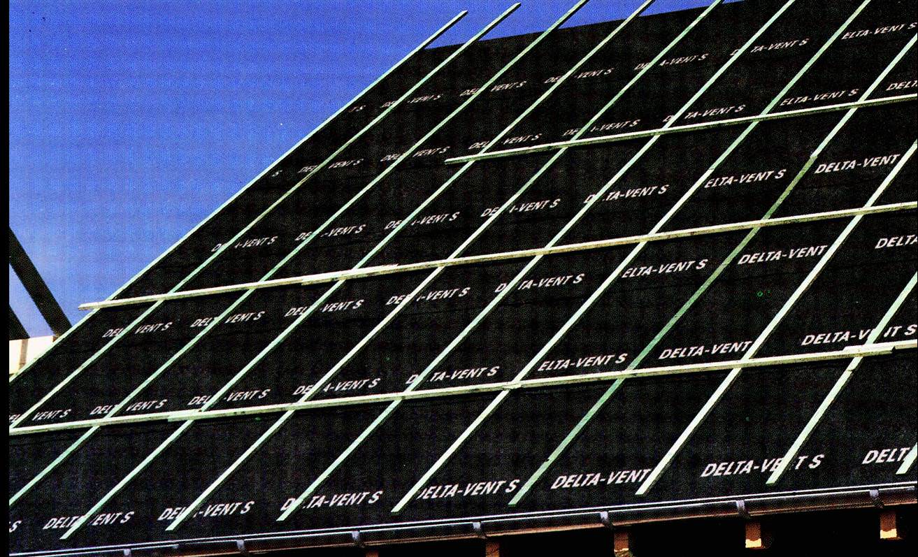 Delta VENT S – универсальная мембрана повышенной прочности, состоящая из трех слоев: основного дышащего материала и внешнего нетканого полипропиленового полотна. Разработана для использования в кровельных конструкциях с однослойной вентиляцией. Продукция предназначена для укладки прямо на теплоизоляцию или сплошной настил. Благодаря матовой черной поверхности не бликует.