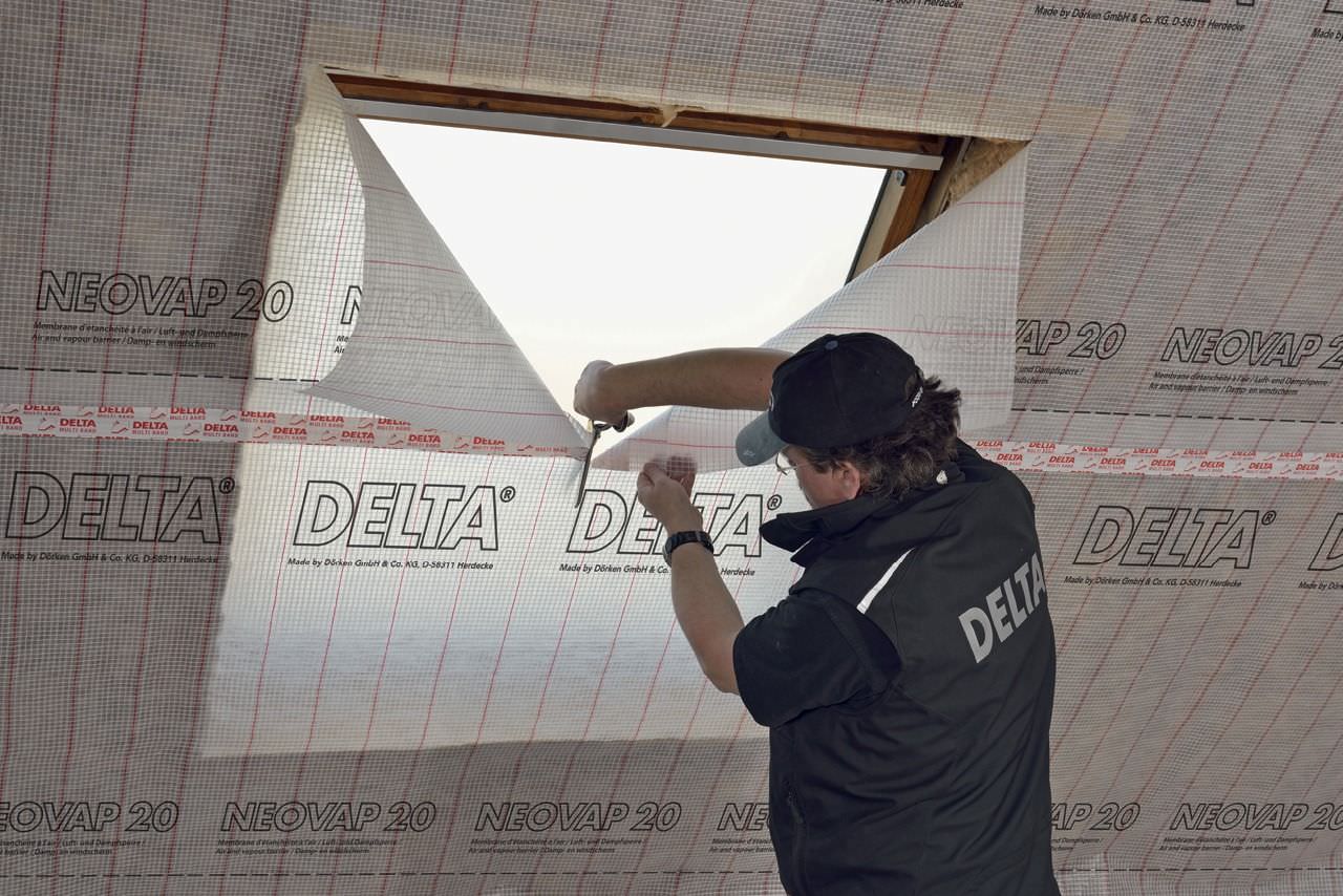 Delta NEOVAP 20 – полупрозрачный пароизоляционный материал с показателем Sd=20 м. Рассчитан на использование в условиях стандартной влажности и температуры. Пленка имеет дополнительное армирование, что снижает вероятность ее повреждения во время работы. Прозрачность позволяет визуально контролировать правильность укладки теплоизоляции. Красные полосы обеспечивают простоту раскроя.