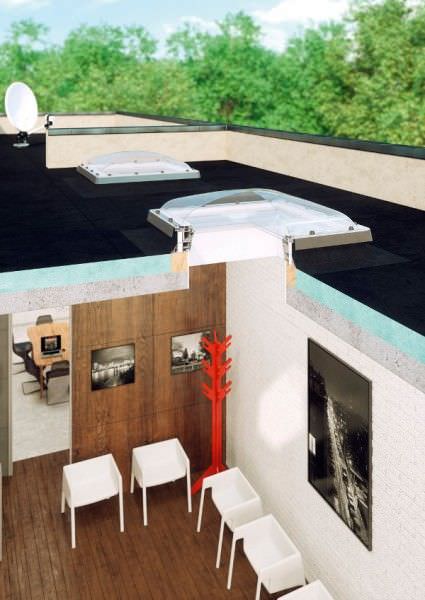 Окно Fakro DMC-C P2 с куполом подходит для плоских крыш, обеспечивая естественное освещение мансарды. Внешняя часть изготовлена из поликарбоната повышенной прочности, который устойчив к влиянию механических повреждений и атмосферных явлений. Может комплектоваться двух- или трехкамерным стеклопакетом. Створка открывается вручную (с помощью приобретаемого отдельно телескопического стержня) на 30 см.