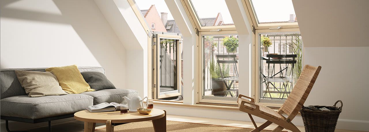 Насладиться теплыми солнечными днями проще с мансардным окном Velux GEL. Конструкция одновременно обеспечивает панорамный вид из мансарды и удобный выход на встроенную террасу. Верхняя створка распахивается по верхней оси наружу, а нижняя по боковой оси вправо или влево (выбирайте при покупке). Они имеют раздельные запирающие механизмы, оборудованы вентиляционным клапаном.