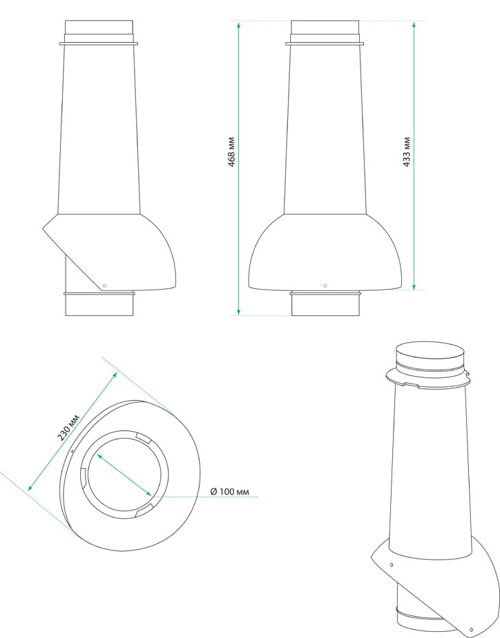 Вентиляционный выход канализации без колпака, внутренний диаметр 100мм, высота 450мм. Дополнительно необходим проходной элемент на кровлю.