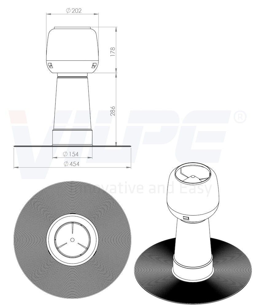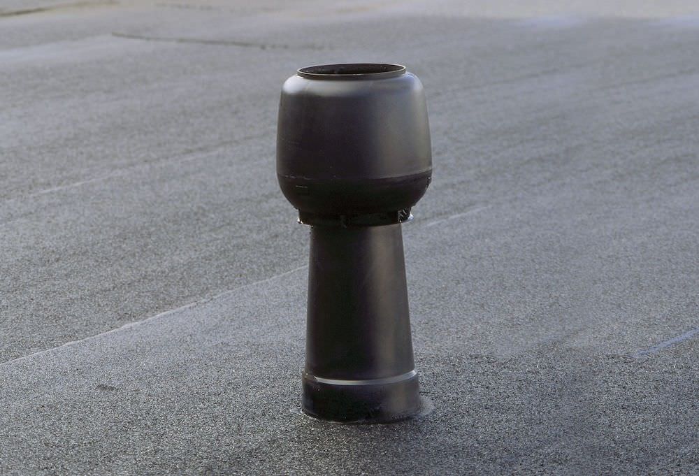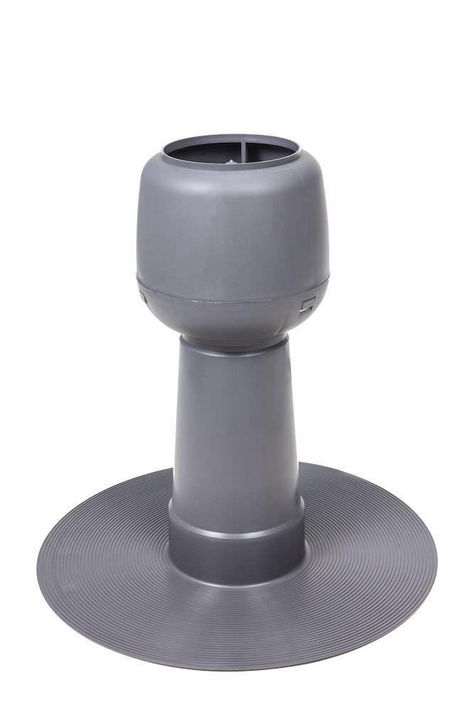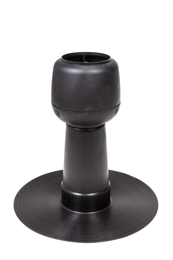 Установка дефлектора необходима для нормального воздухообмена в подкровельном пространстве. Конструкция своевременно эвакуирует наружу горячий и сырой воздух, предотвращает появление конденсата. Устройство монтируется на пологой кровле битумного типа. В комплект входит проходной элемент.