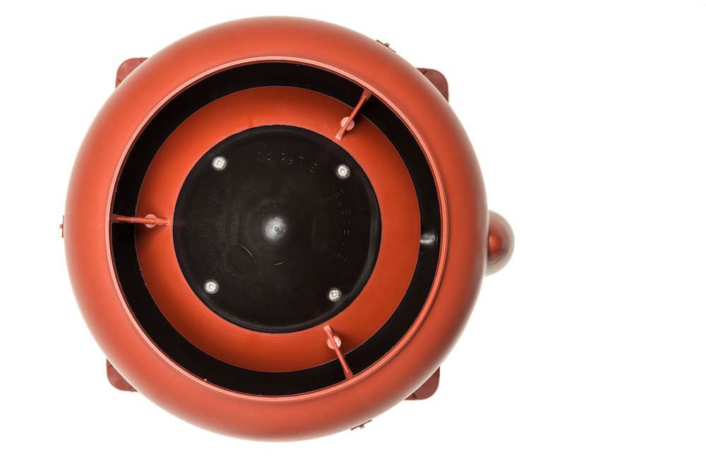 Модель снабжена квадратным основанием, монтаж проводится на ровные поверхности. Устройство актуально для вентиляционных шахт с естественной и принудительной системой воздухообмена. Возможна установка без основания. В комплект входят колпак, соединительный патрубок, основание, крепежи, инструкция.